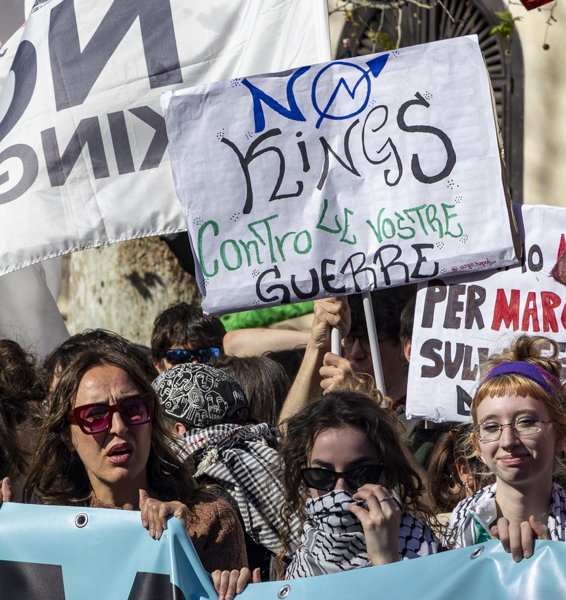 E arrivato a San Giovanni il corteo non si ferma, continua per arrivare sulla tangenziale come avevano fatto i cortei dell’ autunno contro il genocidio in Palestina. Perché, esattamente come abbiamo fatto a settembre e ottobre, per fermare la guerra, la riconversione militare, e i governi reazionari abbiamo bisogno di bloccare le città, i nodi della produzione e della logistica, e abbiamo bisogno di fermare questo governo e i suoi alleati. E speriamo che la manifestazione No Kings apra una stagione di lotte, del resto l’aria è frizzante e c’è odore di primavera.
