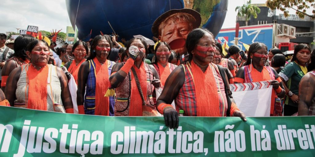 Nella città amazzonica di Belém, mentre si svolge la conferenza Onu sul clima, i popoli indigeni si incontrano protestano, prendono spazio. Il messaggio è chiaro, basta alle fonti fossili e nessuna transizione agita sulla loro pelle e la loro terra