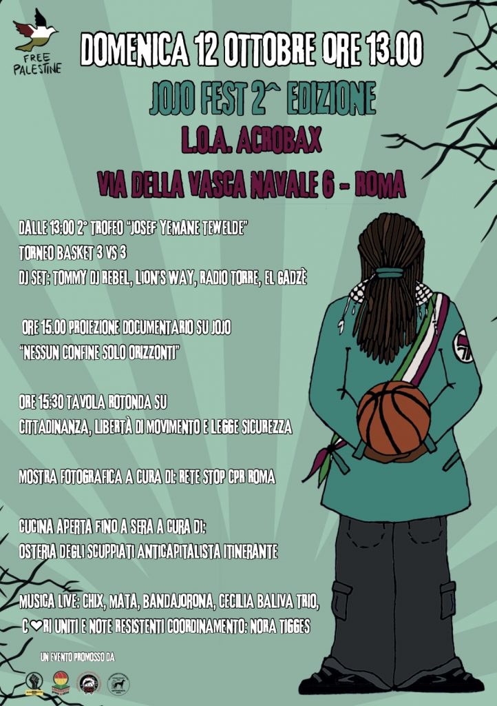 L’energia e l’acuta intelligenza politica di Josef Yemane Tewelde, per tuttə semplicemente Jojo, continuano a circolare nelle strade e nei luoghi di lotta di Roma, a un anno e mezzo dalla sua prematura scomparsa. La testimonianza più concreta di questa eredità collettiva è la seconda edizione del JoJoFest, che si terrà il 12 ottobre presso il L.O.A. Acrobax in via della Vasca Navale 6. Una giornata di sport popolare, musica, socialità e riflessione politica organizzata da un’ampia rete di realtà sociali, collettivi, amicə e compagnə che con Jojo hanno condiviso percorsi di lotta e di vita.