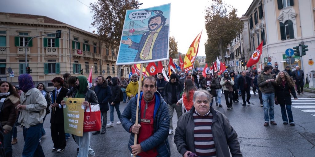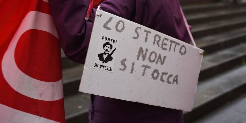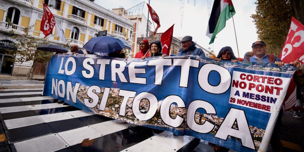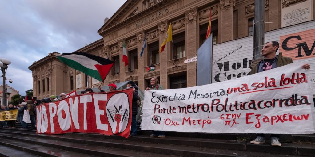 Siamo chiare, siamo chiari: tocca a noi farlo. È una lotta che non possiamo, né vogliamo delegare. È una lotta delle persone, dei comitati, dei collettivi, dei movimenti, delle comunità – e nessuno se ne può appropriare. E il primo obiettivo per archiviare la questione ponte per noi è evidente: chiudere la Stretto di Messina SpA. Lo gridiamo forte a chi è al governo – a Meloni, Salvini, Tajani –, ma lo ricordiamo anche a chi ha avuto responsabilità di governo in passato e non lo ha fatto. Oggi alcuni di questi soggetti hanno manifestato per le strade di Messina, ma vogliamo essere chiare, e altrettanta chiarezza pretendiamo, con chi magari un giorno tornerà al governo del Paese: chiudere la Stretto di Messina SpA. Il problema non è solo il ponte di Salvini, il problema è il ponte in sé.