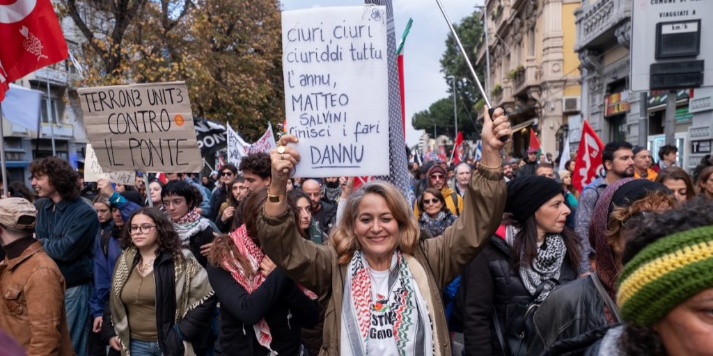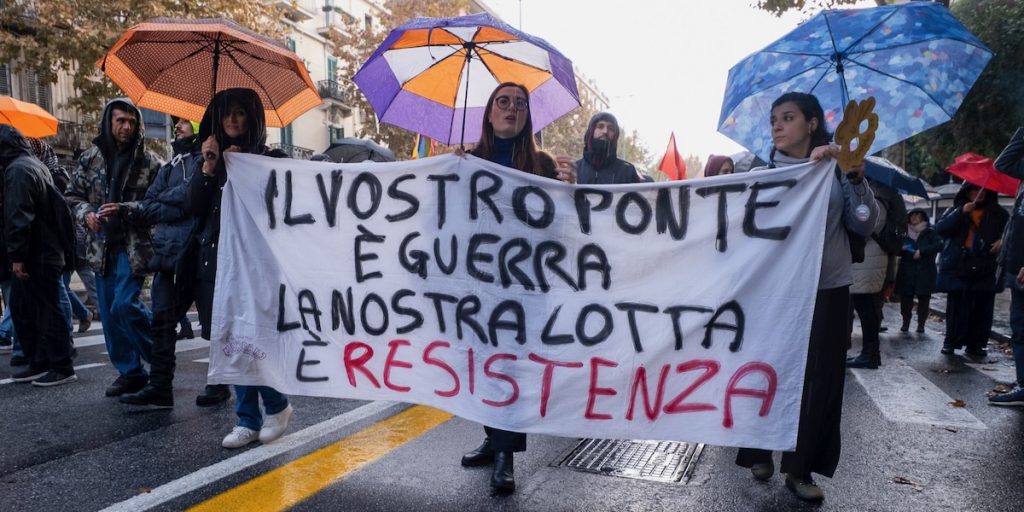 Perché Gaza è oggi il nome comune di ogni ingiustizia e perché il progetto di ricostruzione di Gaza è la manifestazione più feroce delle politiche estrattiviste e coloniali di cui anche il ponte è espressione. Quelle stesse politiche estrattiviste e coloniali che portano con sé morte e repressione, repressione che colpisce i movimenti con arresti, multe, misure sempre più restrittive della libertà di manifestare,