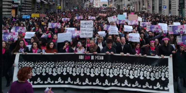 Non Una Di Meno 100mila in piazza a Roma: «Contro la vostra violenza, siamo rivolta»