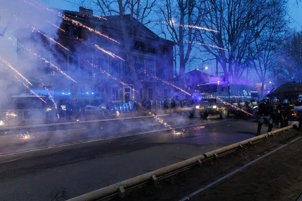 Nonostante l’imponente dispiegamento di forze dell’ordine, le e i manifestanti hanno resistito compatti a ore di conflitto con la polizia, che ha ripetutamente caricato l’area con idranti e gas lacrimogeni. Si contano diverse persone ferite e in stato di fermo.