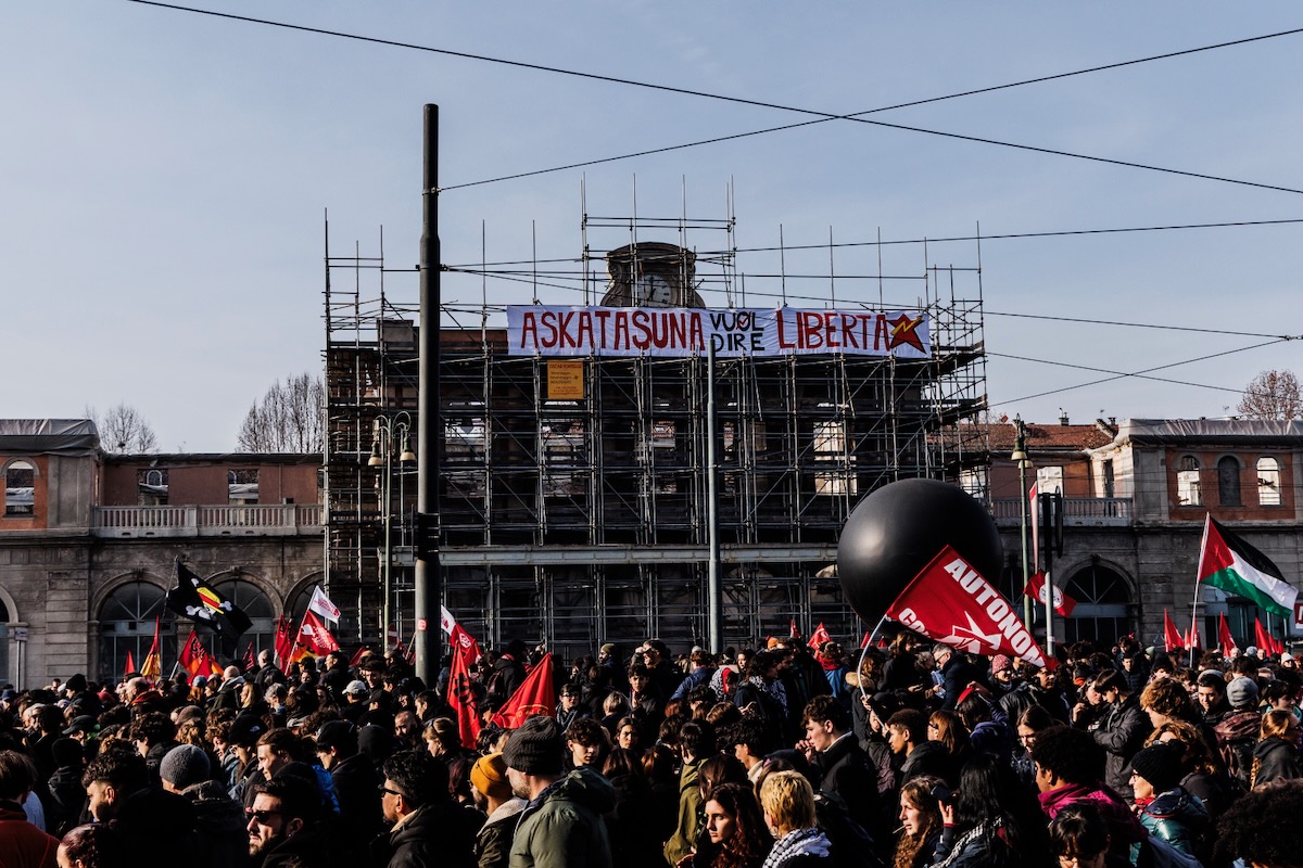 Le ragioni del corteo non riguardavano solo la solidarietà con Askatasuna: scendere in piazza oggi significava rivendicare un’idea di società diversa, fondata sulla complicità e sulla solidarietà con la resistenza.